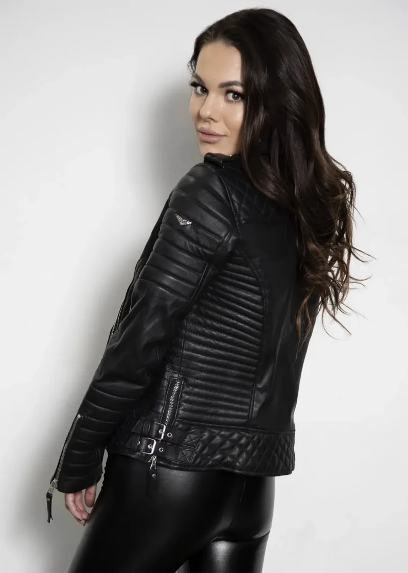 Elevate your outerwear collection with the Women’s Quilted Black Biker Leather Jacket, a testament to fine craftsmanship and contemporary fashion. Ideal for the modern woman who values both style and functionality.